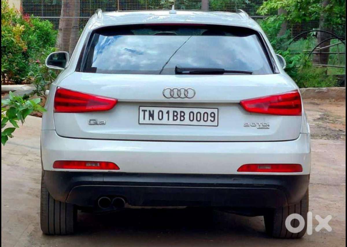 - Automatic Diesel Audi Q 3 2012 Model Panoramic Sunroof Second Owner Colour White 69,000 kilometres Driven Fancy No TN 01 BB 0 0 0 9 6 Airbags With Abs Branded Bridgestone Tyres with Alloy wheels Inbuilt Original Music System with USB Climatic control AC Moterised Leather Seats With Mirrors Reverse Sensor Fog Lamps Excellent condition No Replacements Life Tax Full Insurance Price 12.95 Lakhs