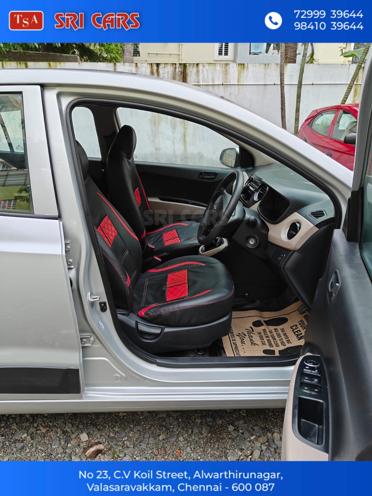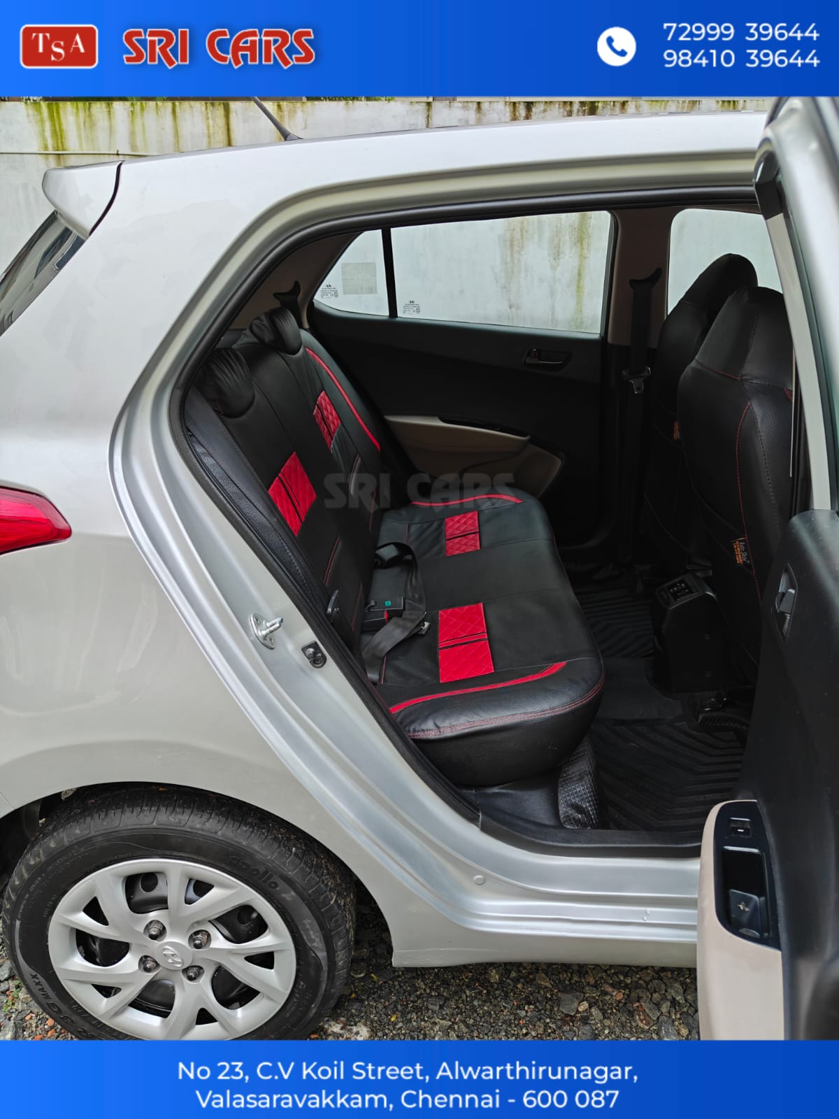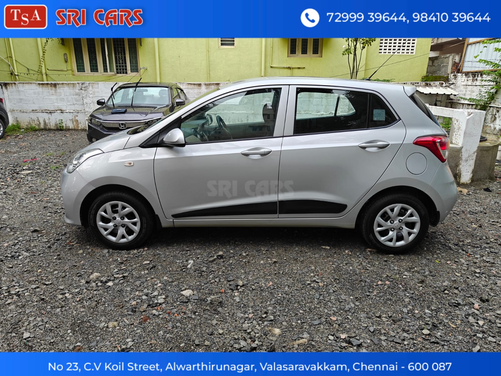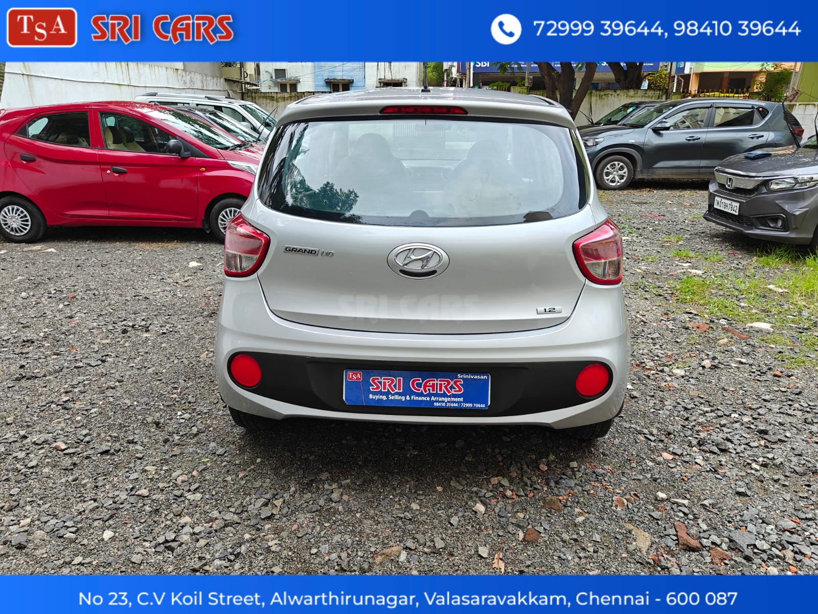 - HYUNDAI GRAND I10 MAGNA, (AIRBAG),PETROL,2017 MODEL, SINGLE OWNER,69,000 KM, COMPANY SERVICES,NO FLOOD,VERY GOOD CONDITION,PRICE NEGOTIABLE, FINANCE ARRANGE*. CONTACT: SRINIVASAN. ADDRESS: Sri Cars no.23, Chintamani Vinayagar Koil St, Alwartirunagar, Valasaravakkam, Chennai, Tamil Nadu 600087.