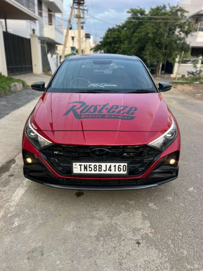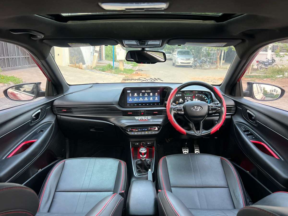- Hyundai i20 N-line N8 Dual Tone IMT Transmission 2023 model Single Owner 50000km 6 Airbags Sunroof Cruise Control Bose speakers 16 inch Alloy Wheels N line batged leather Seats 10 inch infotainment Frk banglore Remus exhaust State 2 tunned 18kmpl Extra Fittings worth 2Lakhs