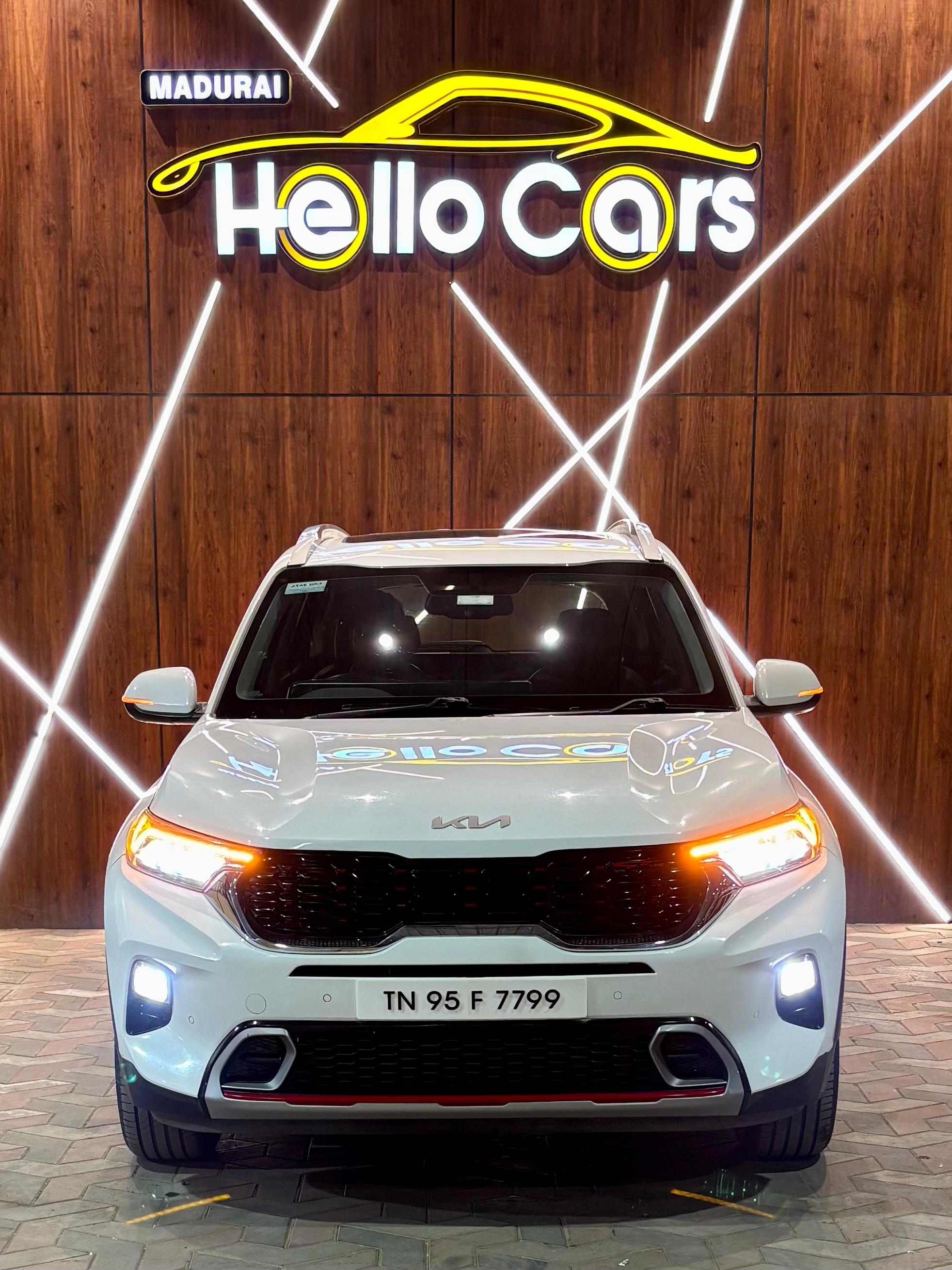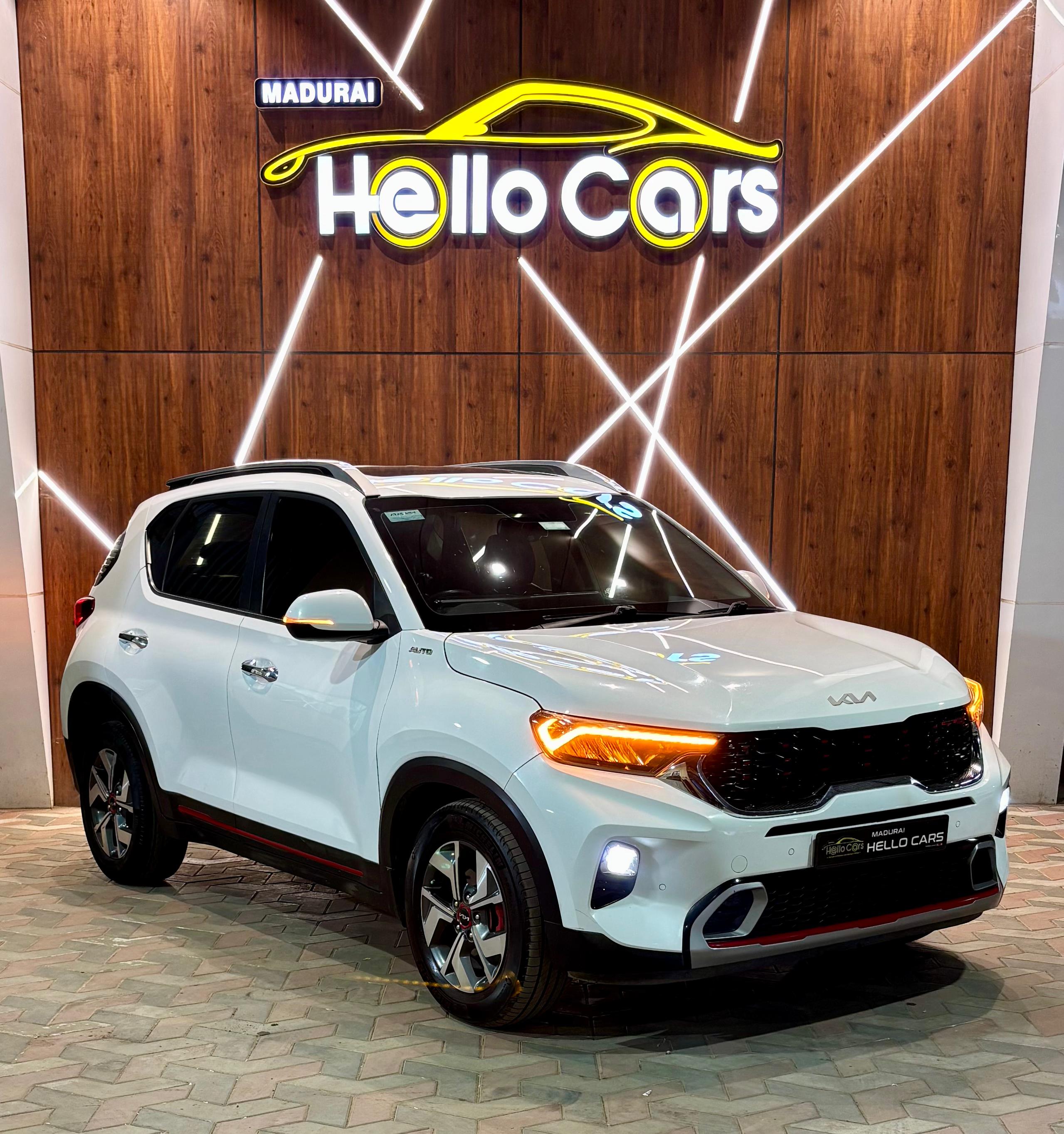 - Kia Sonet GTX Plus Diesel Automatic Sunroof Top End Model 2022 80000 Km Single Owner 1.5L Diesel Engine. 113 BHP & 250 NM Torque. 6 Speed Automatic Transmission 10.25 HD Touchscreen Navigation System. Bose Hi-fi music System with subwoofer. Cruise Control. 6 Airbags. Air Purifier. Keyless Entry Push Button START. Crown Jewel LED Headlamps. LED DRL. LED HeartBeat Taillamps. Projector Foglamps. Black with Red perforated Premium Leather seats. Front Ventilated AC seats. GT Flat Bottom Leather Steering Wheel. Auto Climatronic AC. Rear AC Vents. Digital Instrument Cluster. Colored Multi Information Display. 16”Crystal Cut Alloywheels. New Michelin Tyres. LED Sound Mood lights. Wireless Smartphone Charging. TPMS. Front & Rear Parking Sensors with Reverse Camera. Red Colored Brake Callipers. Second key available. Bumper to Bumper Insurance. Sivakasi Registration. Fancy Number 7799. Neat interiors. Fully company maintenance.