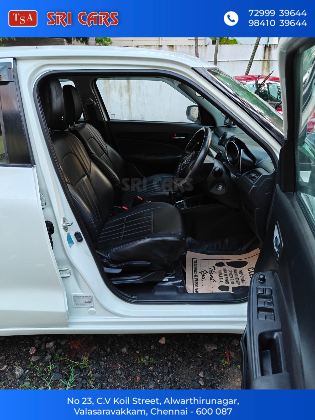 - MARUTI SUZUKI SWIFT VXI AMT,2018 MODEL, SINGLE OWNER,76,000 KM, COMPANY SERVICES,NO FLOOD,VERY GOOD CONDITION, PRICE NEGOTIABLE, FINANCE ARRANGE*. CONTACT: SRINIVASAN ADDRESS: Sri Cars no.23, Chintamani Vinayagar Koil St, Alwartirunagar, Valasaravakkam, Chennai, Tamil Nadu 600087