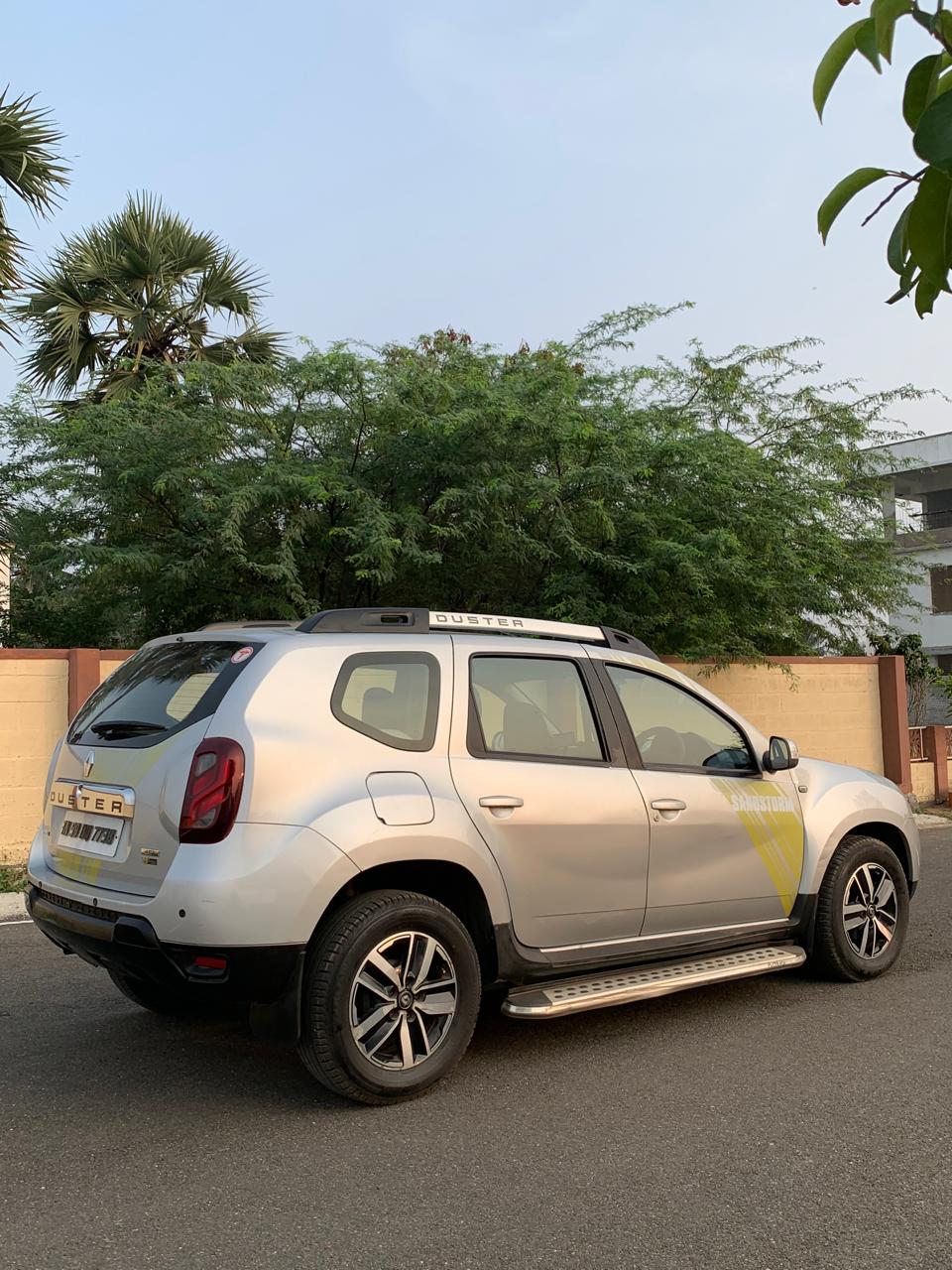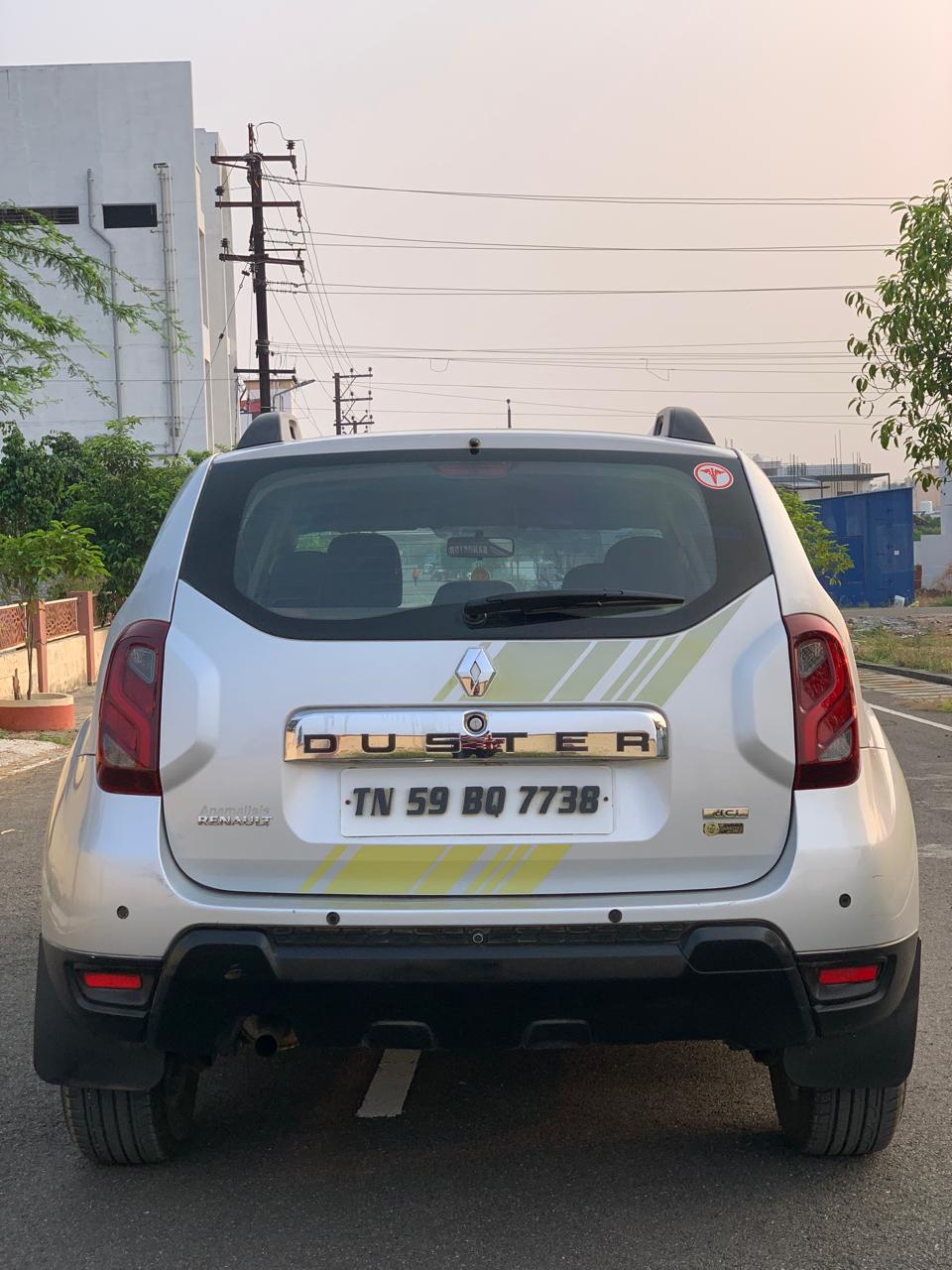 - Make : Renault Duster Reg : TN 59 Madurai Model : 2017/2018 Varient : RXS Sandstorm Edition Fuel : Diesel Colour : Silver Insurance : Full Insurance idv 5.4lakhs KM : 119000 CSR Ownership : 2ND Tyre : New Tires spare Key : Yes Location : ERODE Price : 630000 Negotible *Dual Airbags, Abs, Power Mirrors, Reverse camera, Alloy wheels, New battery, Music system with GPS navigation, Extra Footrest, ETC...*