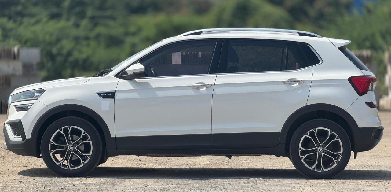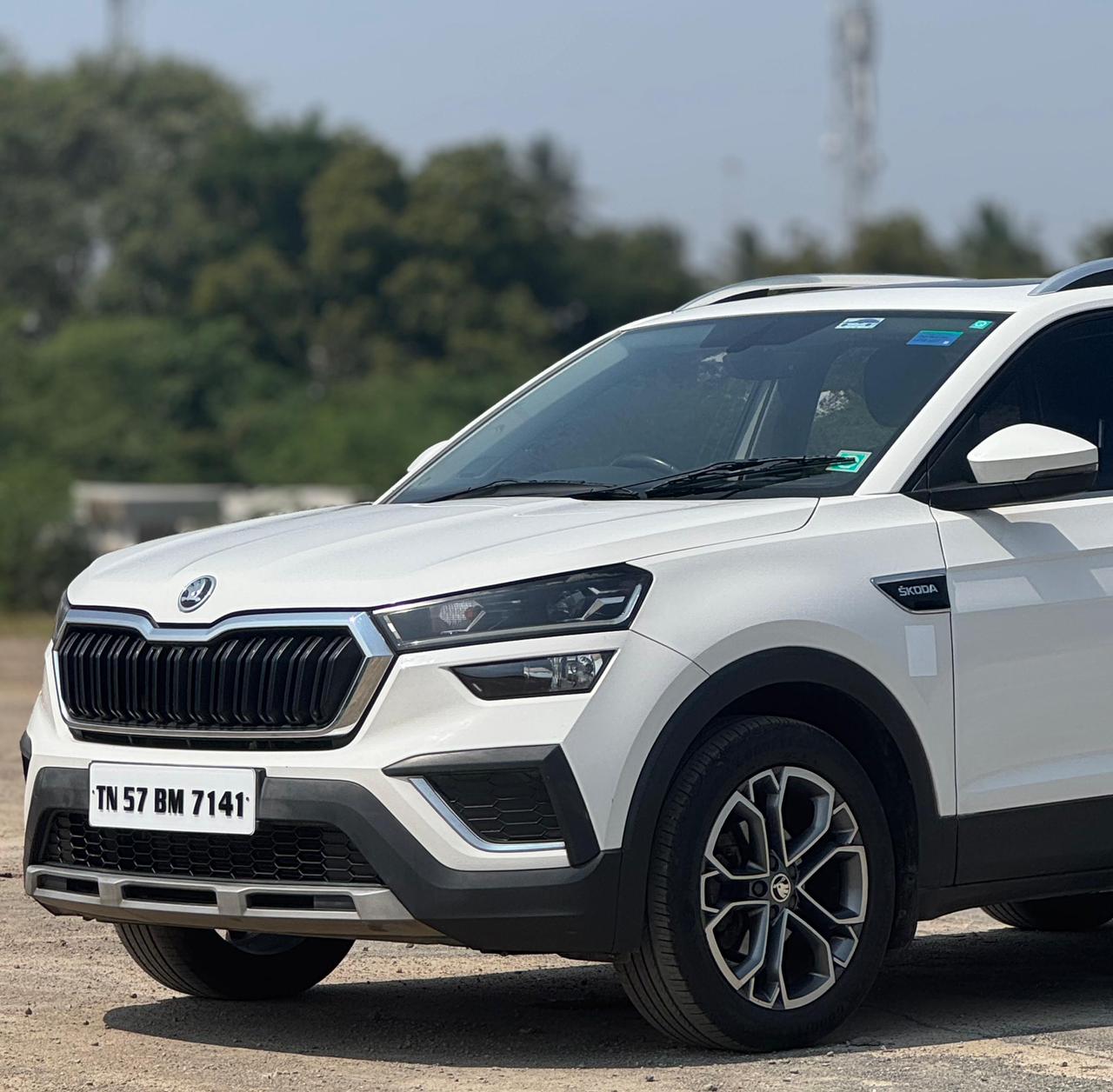 - ŠKODA KUSHAQ STYLE 1.0 TSI MT MODEL | 2021 - SEPTEMBER SINGLE OWNER | PETROL ENGINE JUST | 32.OOO KM | RUNNING ONLY CSR INSURANCE LIVE UNTILL | 2026 -SEP WHITE COLOUR VEHICLE MANUAL TRANSMISSION VEHICLE NO | TN 57 BM 7141 Key Features (Style Trim) Safety: 6 Airbags, ABS with EBD, Multi-collision Brake, Electronic Differential Lock, 5-Star Global NCAP rating. Comfort: Sunroof, Ventilated Front Seats, Automatic Climate Control, Cruise Control, Rear AC Vents, Keyless Entry. Infotainment: 10-inch Touchscreen, Wireless Phone Charging, Android Auto/Apple CarPlay. Exterior: LED DRLs, Roof Rails, Shark Fin Antenna, Chrome Accents. Interior: Dual-tone interior, Leather-wrapped Steering Wheel, Tilt & Telescopic Steering, Rear Camera.