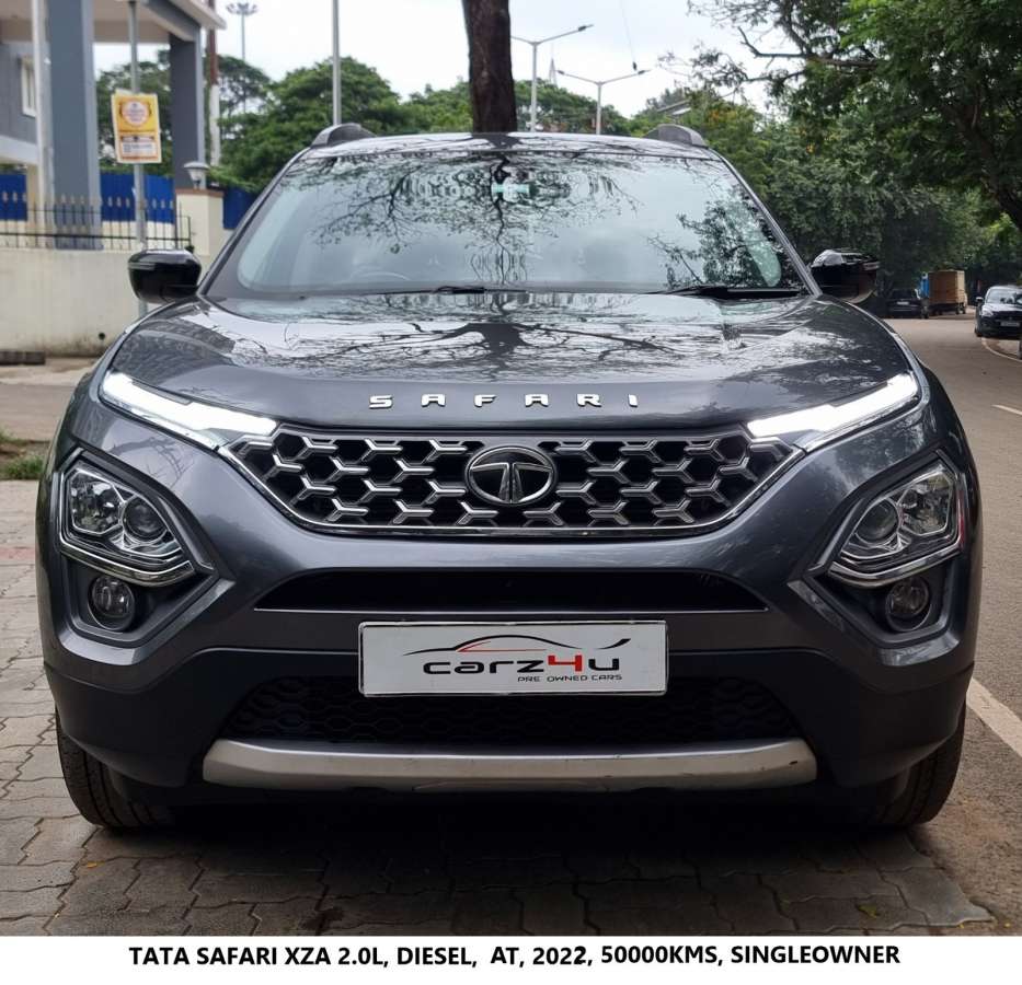 - Carz4u Pre-Owned Cars Multi-Brand Used Cars 23/10 VGP Salai, Ch-15 Make - Tata Model - Safari Variant - XZA 2.0L KRYOTEC Transmission -Automatic Year- 2022 Owner - Single Kms driven - 50000kms Fuel - diesel Color - Grey Specifications Engine-1956 cc, 4 Cylinders Inline, 4 Valves/Cylinder, DOHC Engine Type-2.0 L Kryotec Turbocharger Fuel Type-Diesel Max Powe-168 bhp @ 3750 rpm Max Torque-350 Nm @ 1750 rpm Drivetrain-FWD Automatic (TC) - 6 Gears, Manual Override, Sport Mode Length-4661 mm Width-1894 mm Seating Capacity-7 Person Bootspace-447 litres Fuel Tank Capacity-50 litres FEATURES ABS 8Airbags AlloyWheels Roof Rails Roof-Mounted Antenna Tyre Pressure Monitoring System Child Seat Anchor Points Seat Belt Warning Automatic Climate Control Air Purifier Heater Cruise Control Parking Assist-Reverse Camera Parking Sensors-Rear Button Start Cabin Boot Access Brake Assist Electronic Brake-force Distribution Electronic Stability Program Traction Control System Hill Hold Control Hill Descent Control Engine Immobiliser Central Locking-Keyless Child Safety Lock Speed Sensing Door Lock Door Pockets-Front & Rear Rain-sensing Wipers Rear Wiper Rear Defogger AM/FM Radio Steering-mounted controls iPod Compatibility AUX Compatibility USB Compatibility Bluetooth Compatibility Phone Calls & Audio Streaming Android Auto Apple Car Play Voice Command Wireless Charger Headrests-Front, Second & Third Front Seatback Pockets Driver Armrest Rear Armrest-Cup Holder Average Fuel Consumption Distance to Empty Low Fuel Level Warning Average Speed Door Ajar Warning Gear Indicator Shift Indicator Cooled Glovebox Sunglass Holder Driver Armrest Storage Third Row Cup Holders Well Maintained Excellent condition Company service