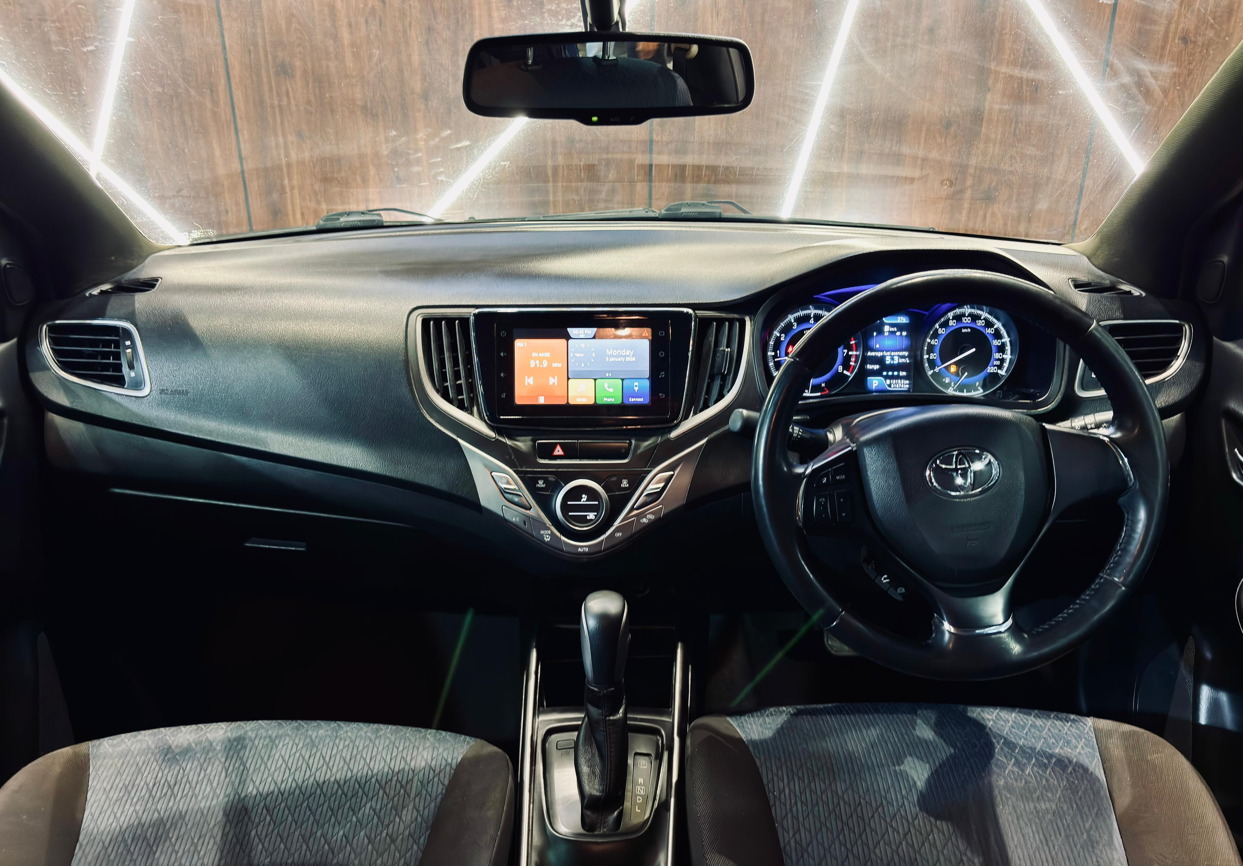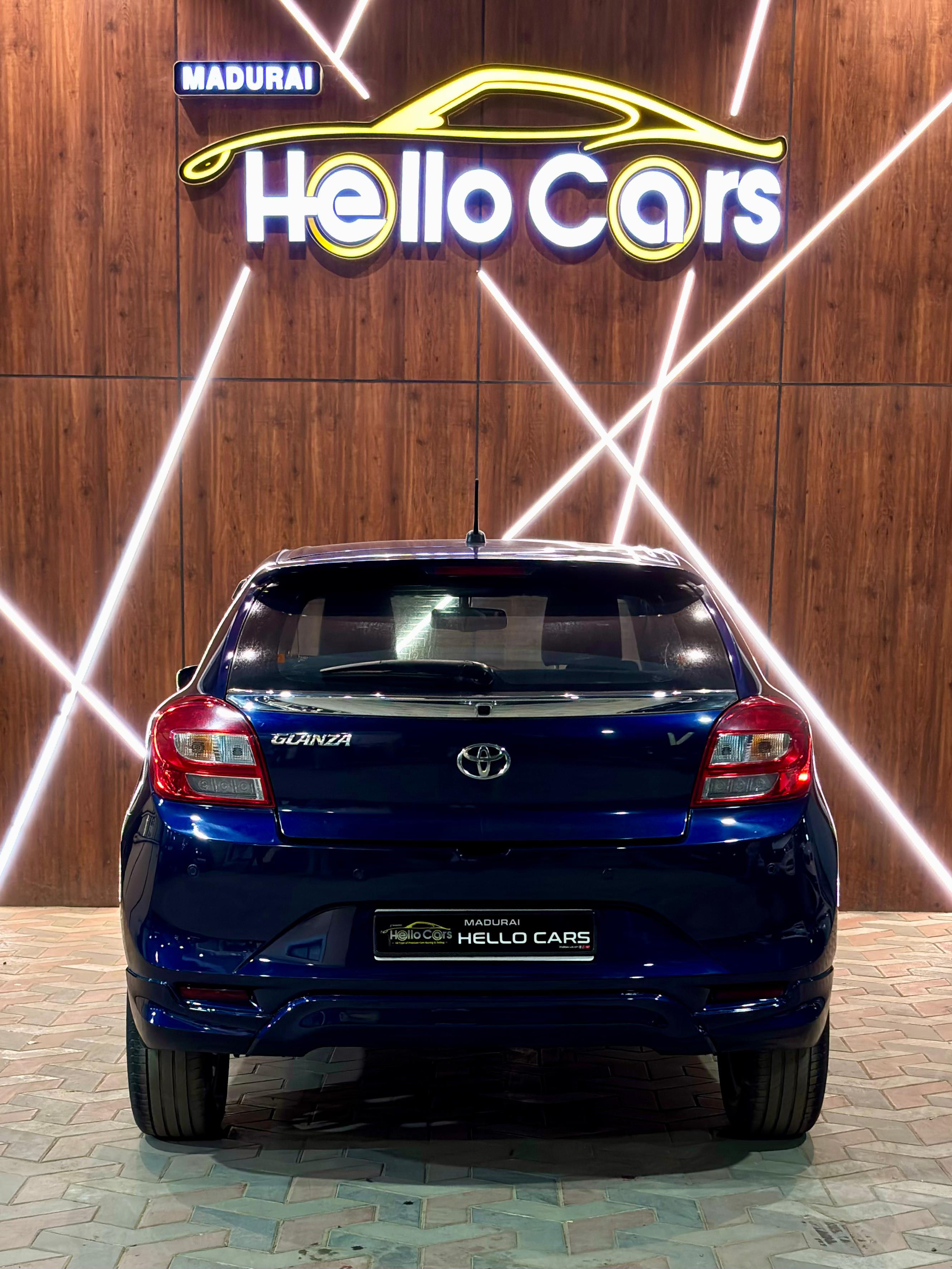 - Toyota Glanza V CVT 2019 60000 Km CVT Automatic with Sports mode. Top End Model Single Owner LED DRL LED Bi-Beam Headlamps. LED Taillamps. LED Foglamps. Keyless Entry Push Button START. ABS with EBD & BA. Dual Airbags Touchscreen Music System with Apple CarPlay & Android Auto. Tilt & Telescopic Steering Adjust. UV Protect Tint Glass. Leather Wrapped Steering wheel. Leather seats. Auto Dimming ElectroChromic IRVM. Follow Me and Auto Headlamps. Auto Foldable sideview mirrors. Auto Climatronic AC. Reverse Camera with Sensor Park Assist. TFT Colored MID Instrument Cluster. Front Arm Rest with storage. 60:40 Split Rear Seat. Insurance upto June2026. Fancy Number 9595 Sivakasi Registration. Second Key available. Neat Interiors. Fully company maintenance.