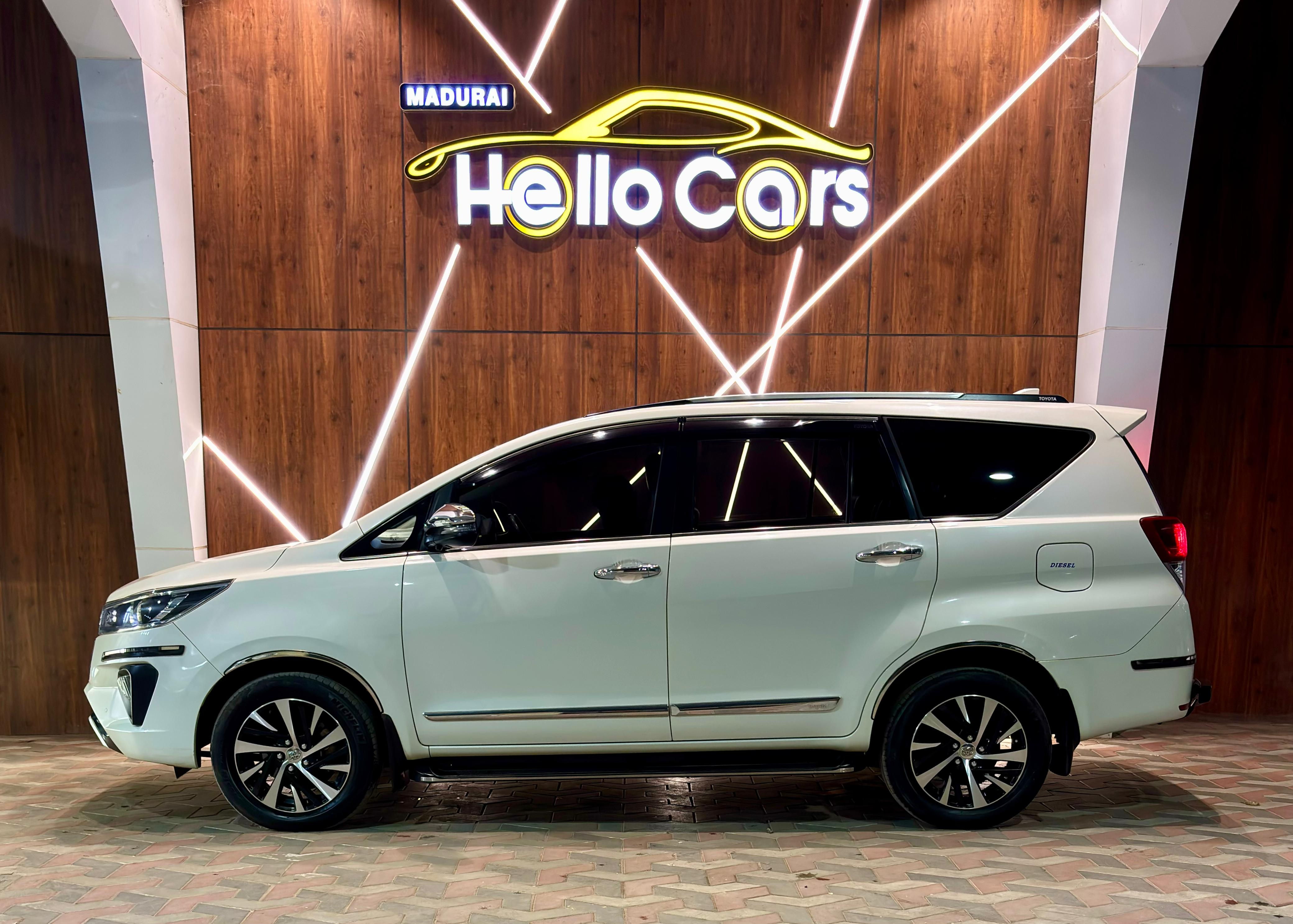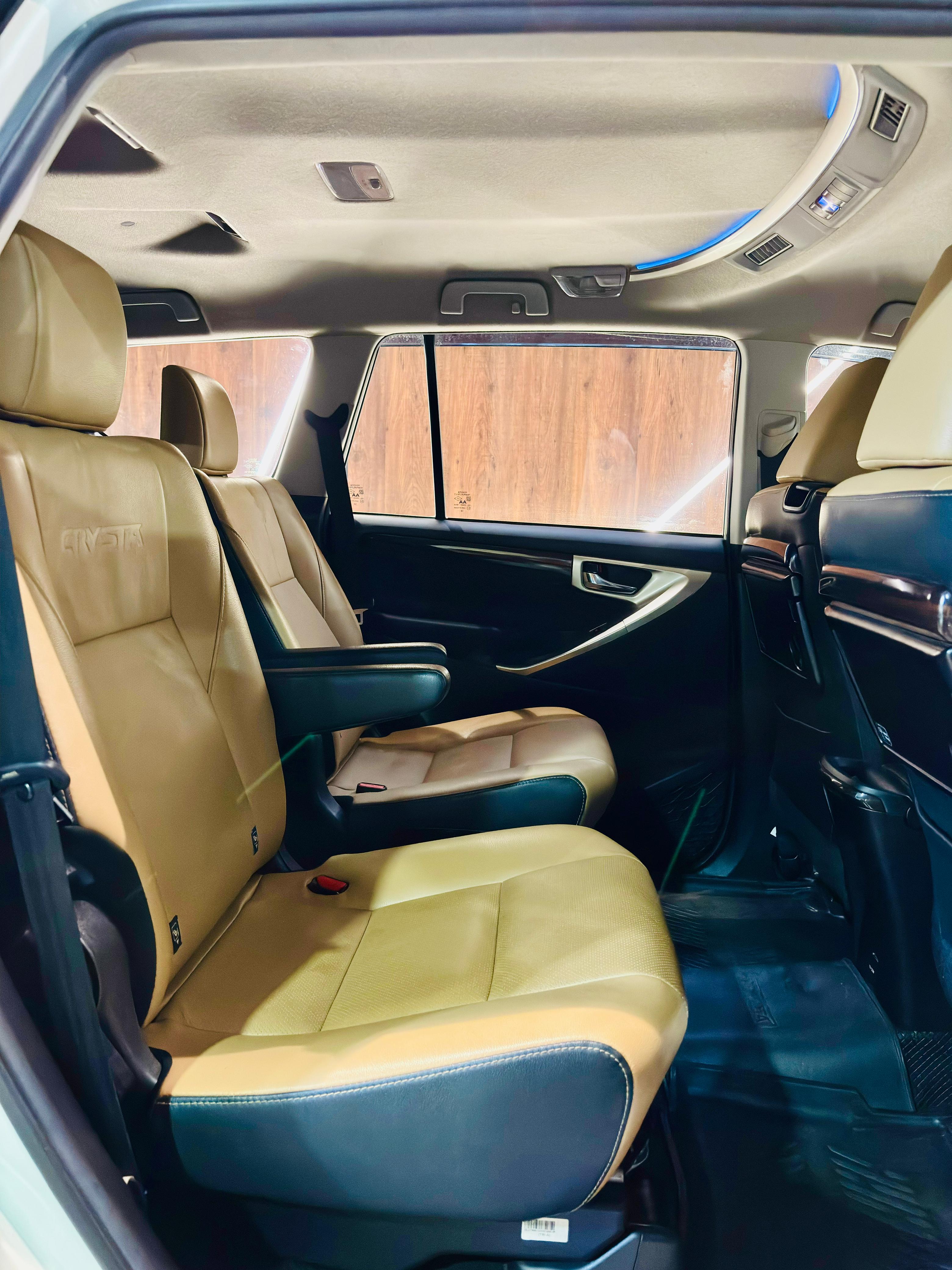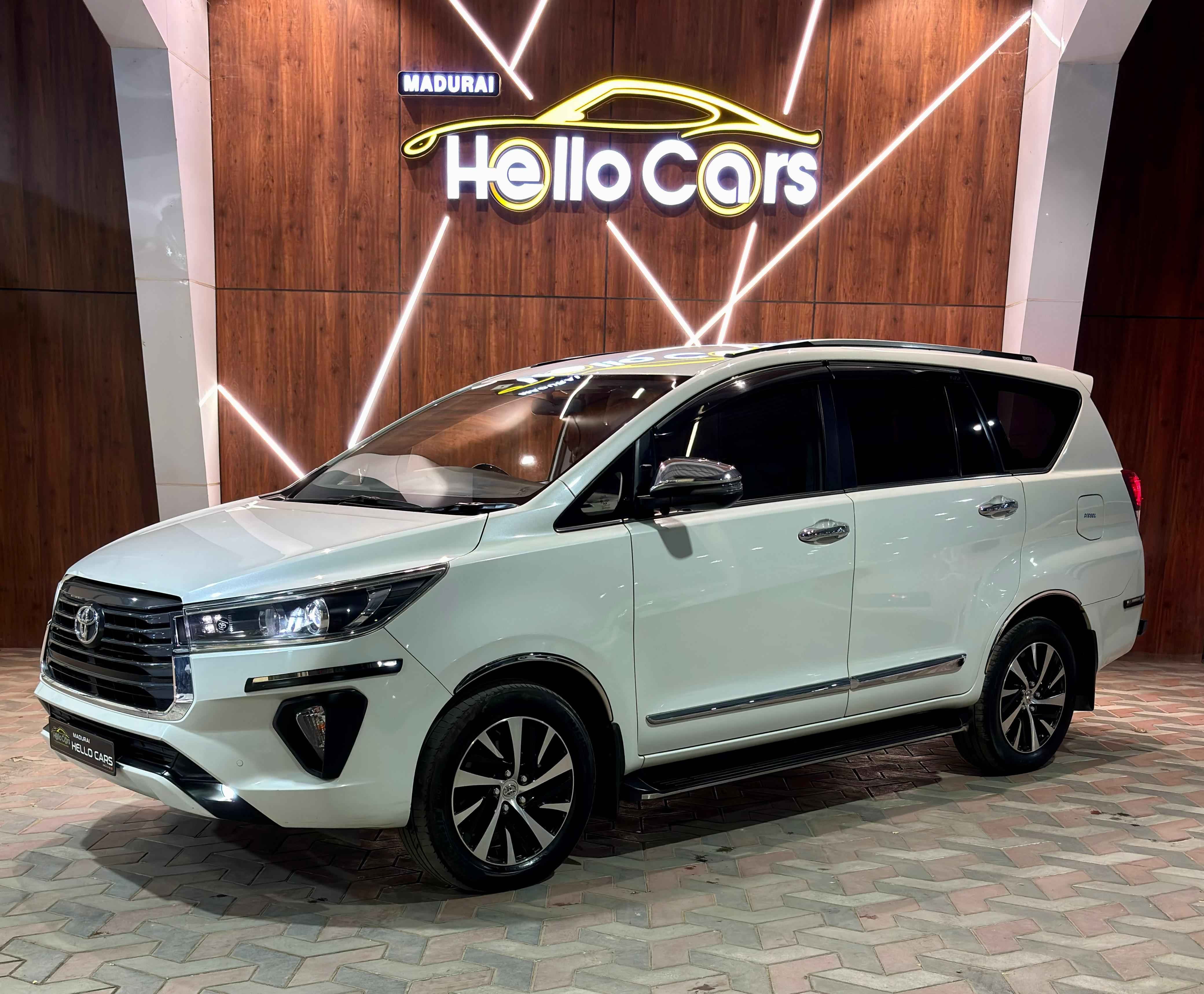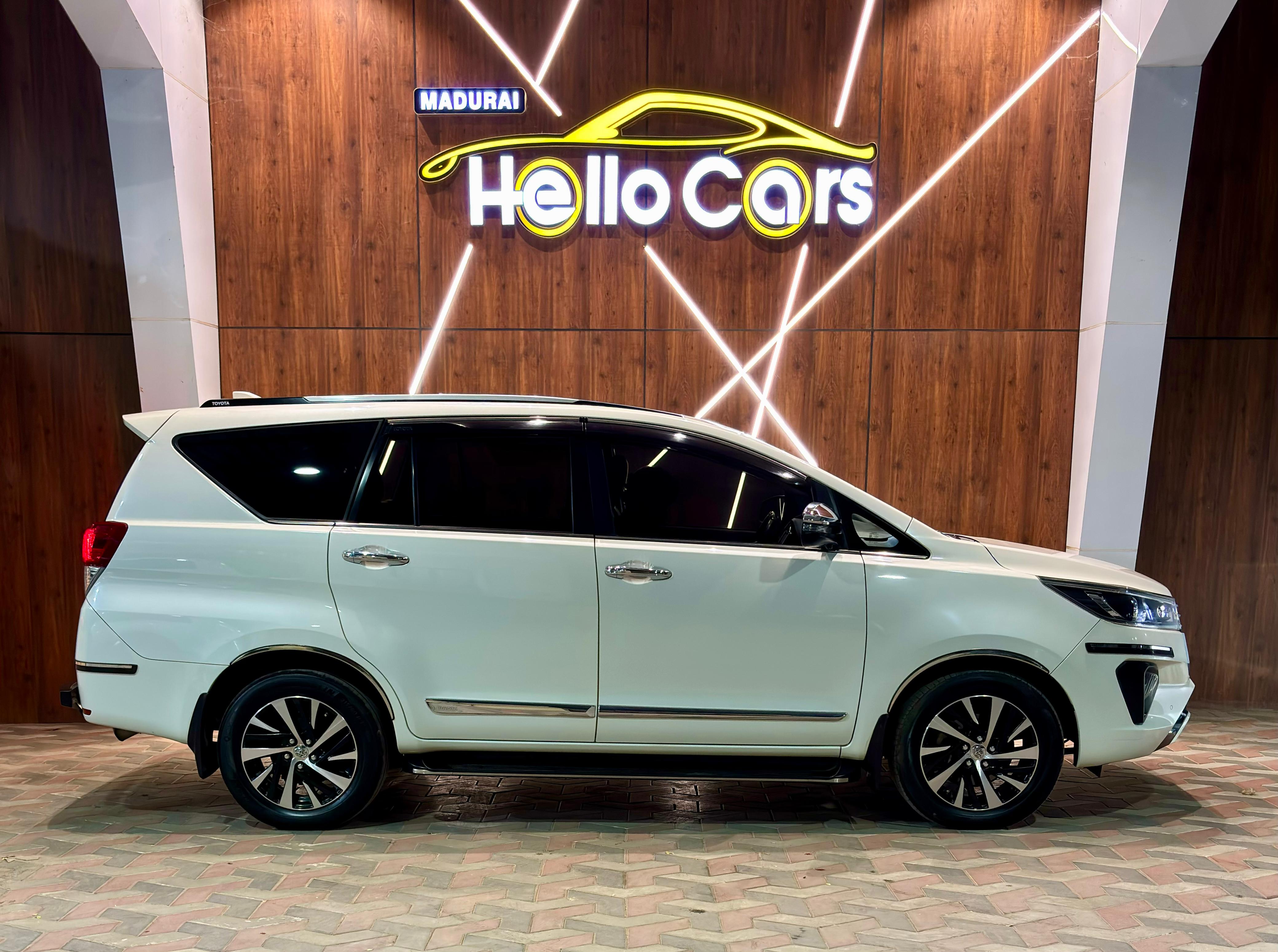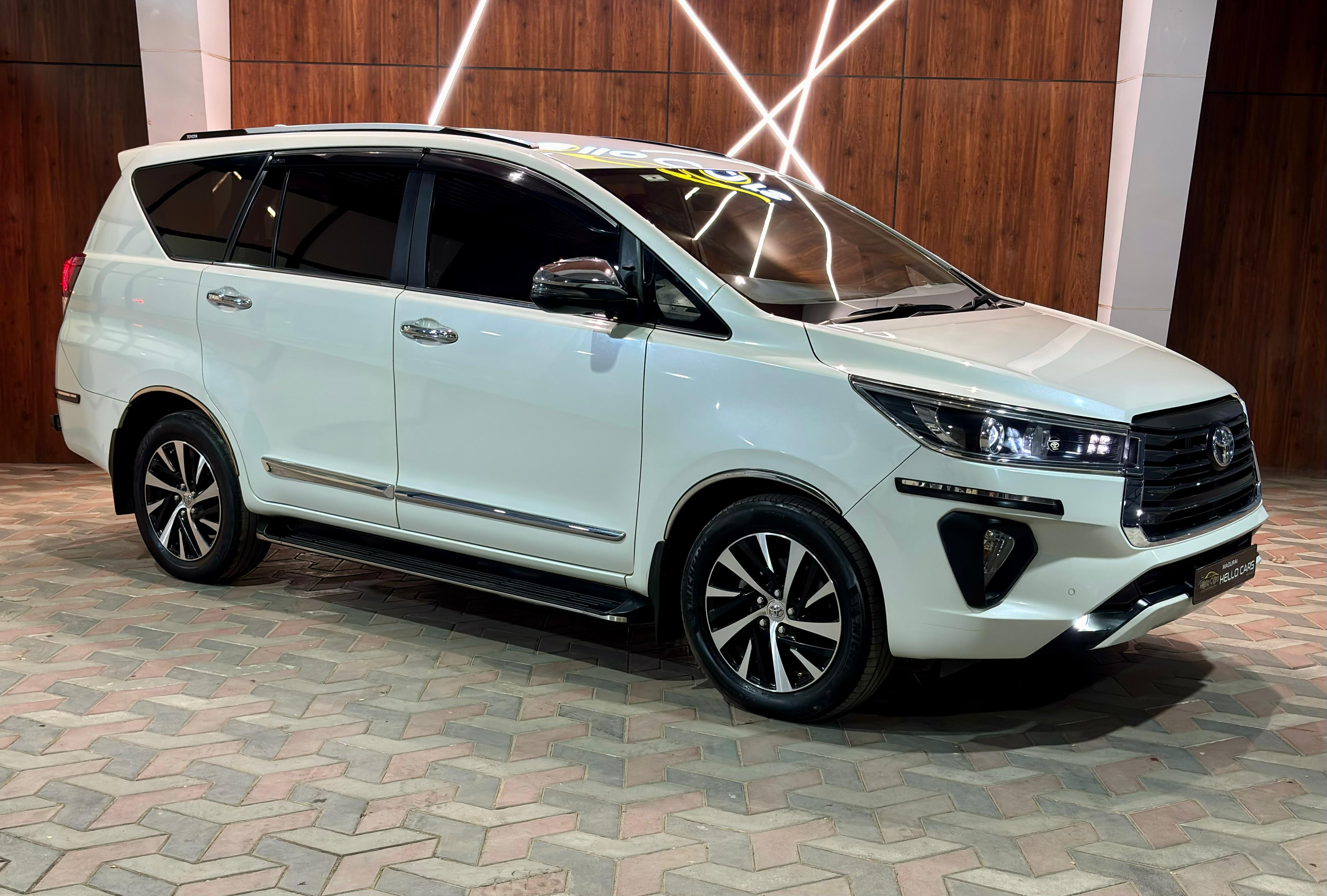 - Toyota Innova Crysta 2.4Z Automatic. 2021 October 80000 km Single Owner. KARAIKUDI REGISTRATION. VIP Fancy Number 6666. Premium Dual Tone Beige Perforated Leather Seats. Full Toyota OE Chrome accessories fitted. 150 BHP & 360 NM Torque. 7 Airbags. LED DRL. LED Headlamps. LED Foglamps. Split Taillamps. Cruise Control. 17” Diamond Cut Alloywheels. 4 New Michelin Tyres. 8” Touchscreen Music System with Apple Carplay & Android Auto. 2 Driving Modes- Eco & Power. Leather wrapped Steering Wheel. Auto Foldable sideview mirrors. 3M Full Sunfilm. OE Side Footstep. OE Roof Rails. OE Rear Safeguard Bumper. Bumper to Bumper Insurance upto October 2023. Second Key available. Neat Interiors. Fully company maintainence.