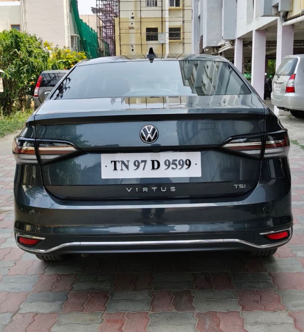 - SKODA AUTO VOLKSWAGEN VIRTUS HIGHLINE 1.0 TSI MT MODEL :- 2024/ FEBRUARY SINGLE OWNER PETROL ENGINE JUST | 29.OOO KM | RUNNING CSR INSURANCE UNTILL 2027/ FEBRUARY GRAY COLOUR MANUAL TRANSMISSION VEHICLE NO TN 97 D 9599 Key Features And Specifications : airbags (top variants), Electronic Stability Control (ESC), ABS with EBD, Hill Hold Control CarWale CarWale +2 Other Features Suspension: Front: Mc-Pherson (stabiliser bar), Rear: Twist Beam Axle Tyres: 205/55 R16 (Alloy wheels on top trims) Key Features: 10-inch touchscreen, wireless Apple CarPlay/Android Auto, ventilated front seats, electric sunroof, and digital driver's display
